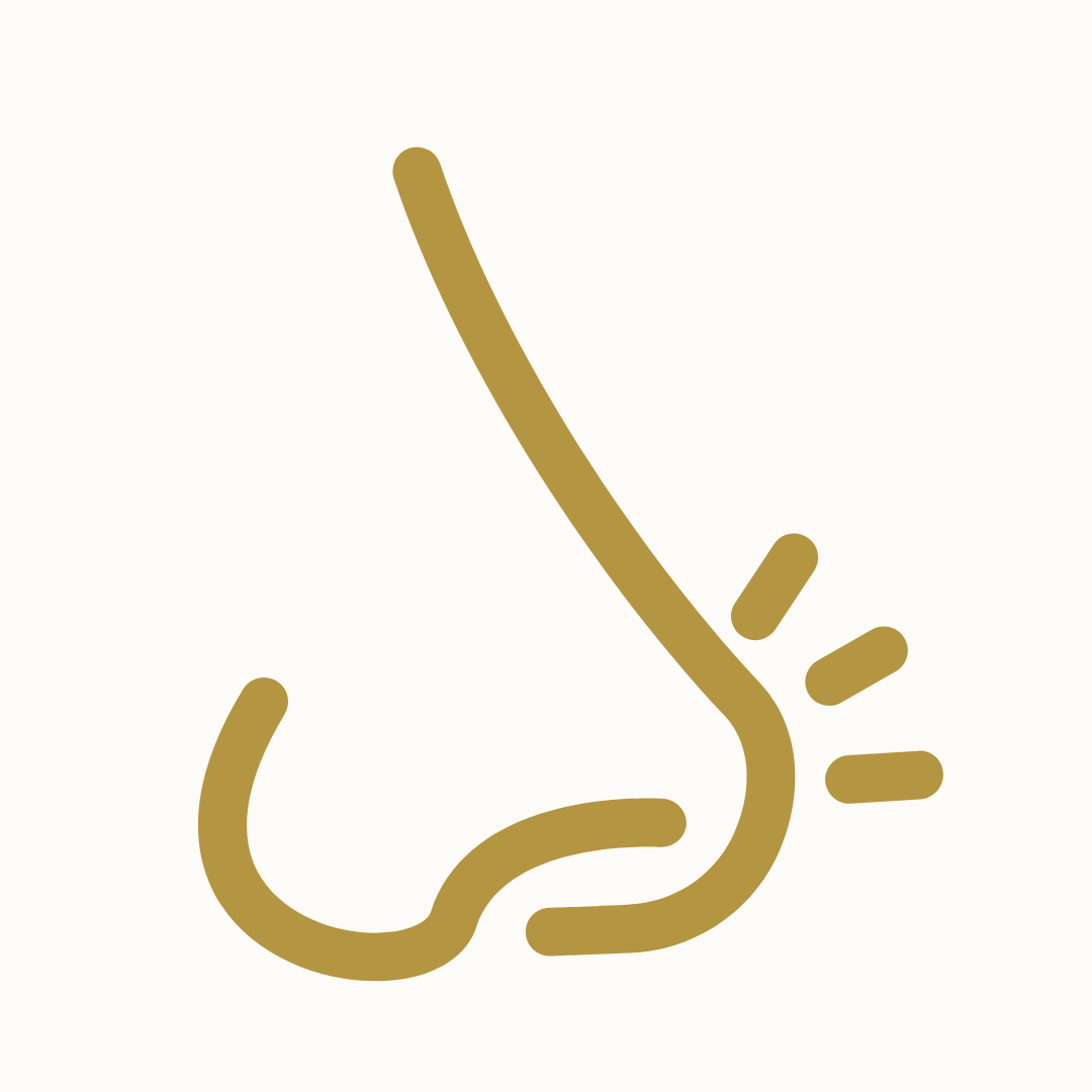 **Step 2:** Place the "V" shape of the brush at the high point of your nose and gently drag it downward. Use light but firm, even pressure with a smooth drag-and-glide motion. Avoid pressing too hard to prevent smudging. If the lines appear too thick or smudged, apply lighter pressure and tilt the handle slightly upward for more precision.