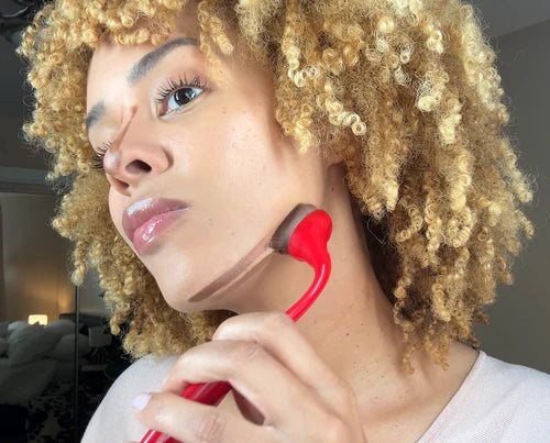 **Quick Tip:** This brush is specifically designed to streamline the process of drawing contour lines on your nose and face. It is not intended for blending. For quick results, use a beauty blender, sponge, or even your fingers to blend and achieve that snatched look with minimal tools after you have used our brush to contour your face.